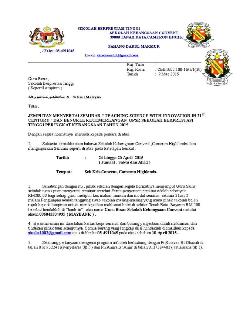 Sehubungan dengan itu pihak sekolah berharap agar tuan dapat meluangkan masa untuk menjayakan program ini. Perlu menulis gunakan bahasa yang mudah tepat dan padat. Surat jemputan surat cadangan dan sebagainya.